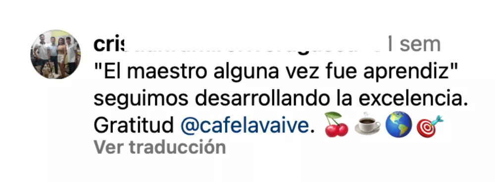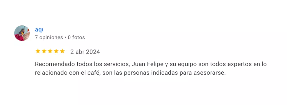 «Gracias a su buena voluntad de ayudar, los cursos y sus herramientas (las cuales son muy útiles), nos ha ayudado a entender la comercialización de nuestro producto a nivel nacional e internacional, nos ayudó a entender lo que realmente es una exportación de café y sus costos; es un aliado en perfilación de café y lo más importante, siempre dispuestos a resolver dudas»