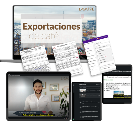 Curso Especializado 100 % online y en español, (con subtítulos en inglés) que combina clases en vídeo, ejercicios guiados y herramientas descargables para que aprendas a exportar café paso a paso.